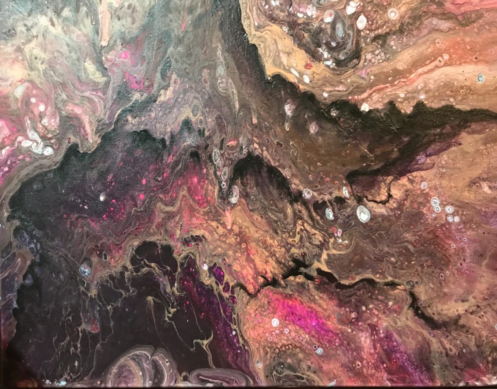 In this series of paintings you’ll see some of my experimentations with mixed media abstracts. Liquid paint is endlessly fascinating. Then the manipulating of the results once the foundation has been laid. So engaging after being representational so much of my art career! I love color!