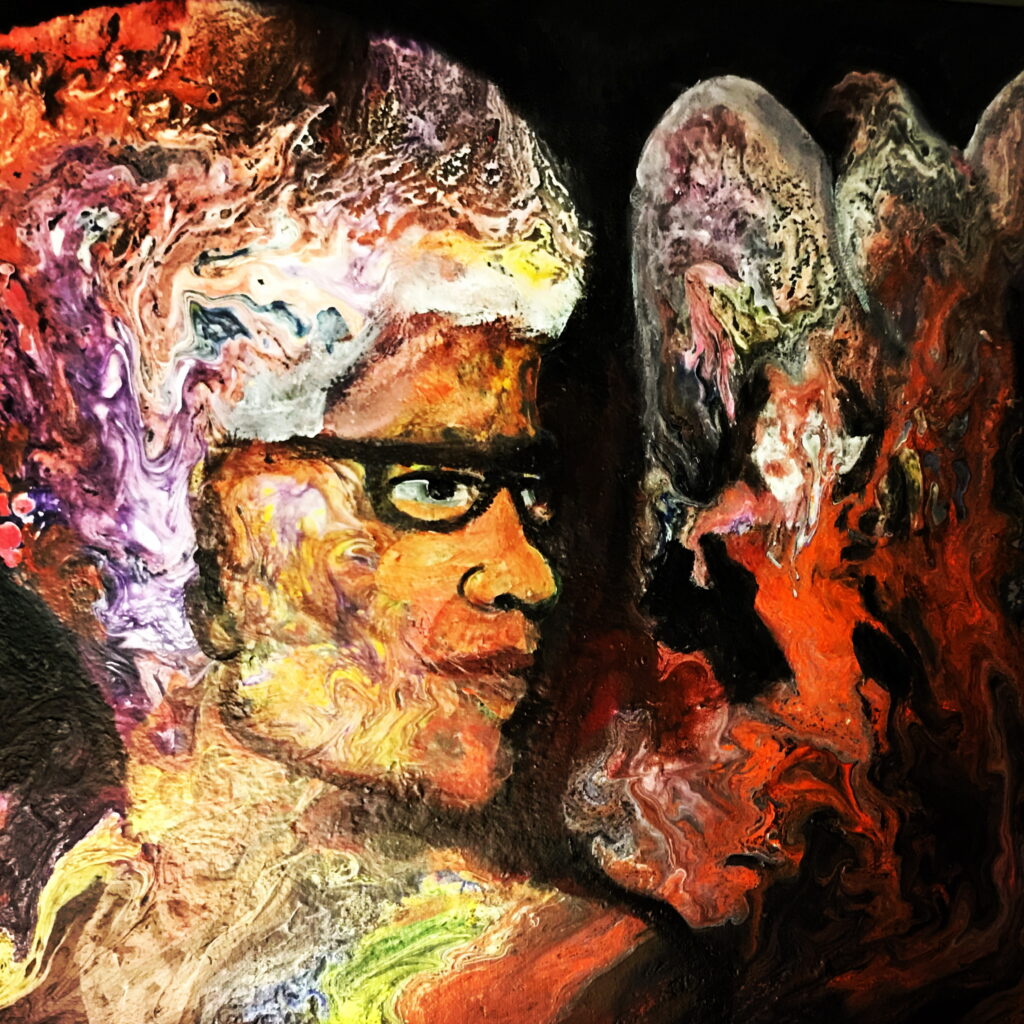 This painting is a vibrant profile portrait that invites us to choose light and compassion over shadow and division. Through bold swirls of color—fiery reds and oranges blending into softer purples and pinks—I aimed to capture the strength and complexity of our better selves. The figure’s black-framed glasses serve as a clear lens, focusing us on clarity and awareness amid the intensity. Creating this work was a reminder that even when the world feels overwhelming, we can always turn toward hope and connection. I hope it encourages you to listen to your own better angels and embrace the light within.