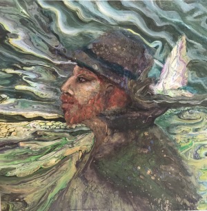This was one of my happiest mistakes of my artistic career. I am utterly astounded at what the paint created. Well yes I did help. One of my Van Goghs from the Revisiting the Masters Collection, featuring new takes on celebrated painters.